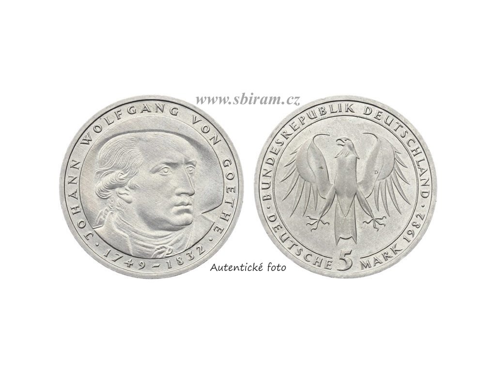 NSR, pamětní mince 5 Marka, 1982, Johann Wolfgang von Goethe, stav 1/1...viz autentické foto