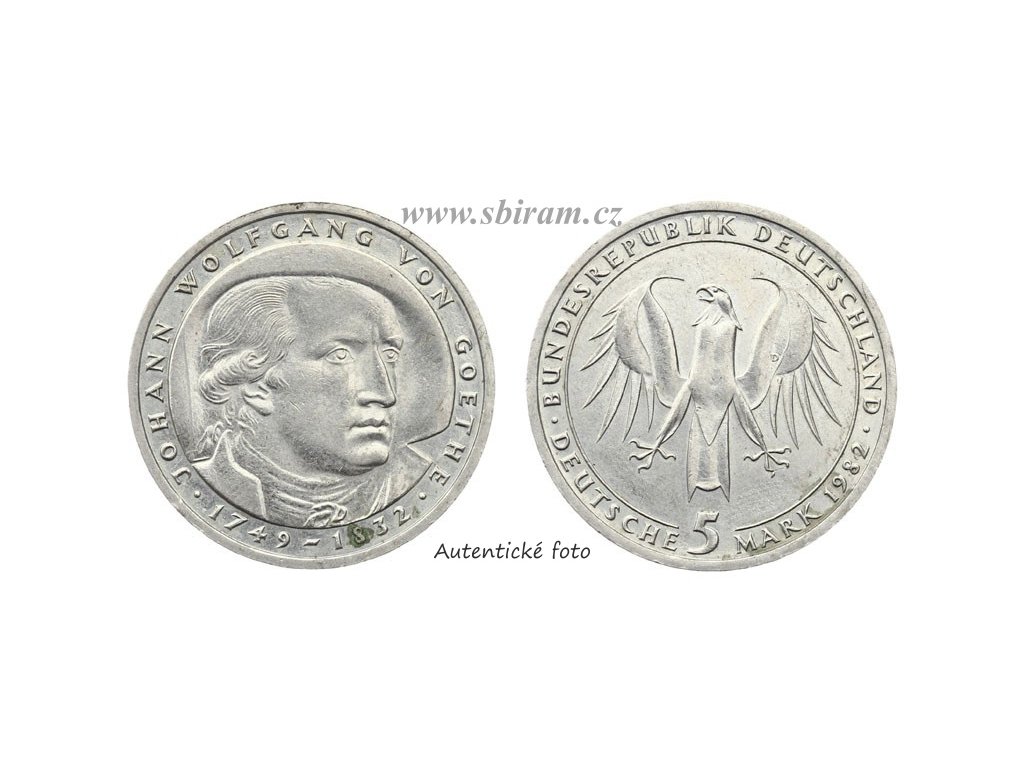 NSR, pamětní mince 5 Marka, 1982, Johann Wolfgang von Goethe, stav 1/1...viz autentické foto
