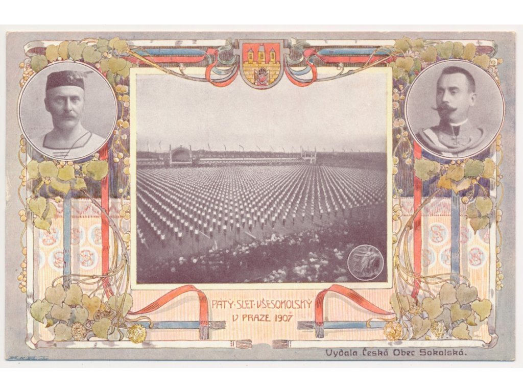 Oficiální dopisnice k V. sletu všesokolskému v Praze 1907, koláž