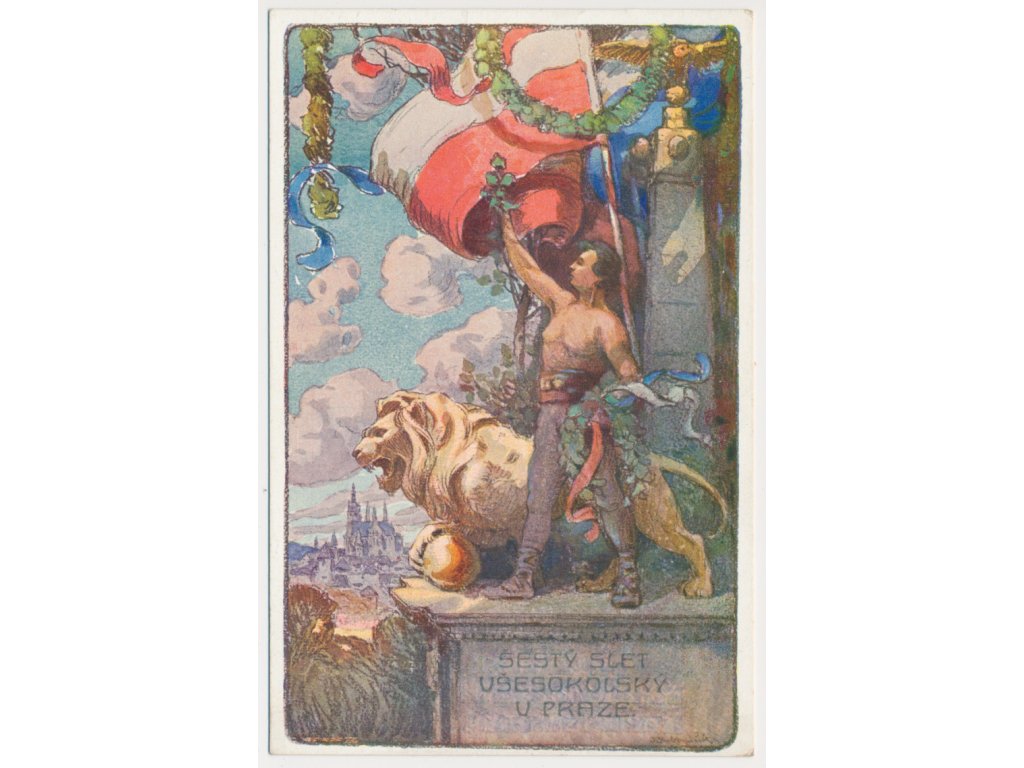 Oficiální dopisnice, VIII. slet všesokolský v Praze 1926, dle orig. ak. malíře F. Naskeho