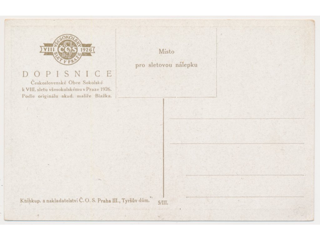 Oficiální pohlednice Českosl. obce sokolské k VIII. sletu všesokolskému, 1926