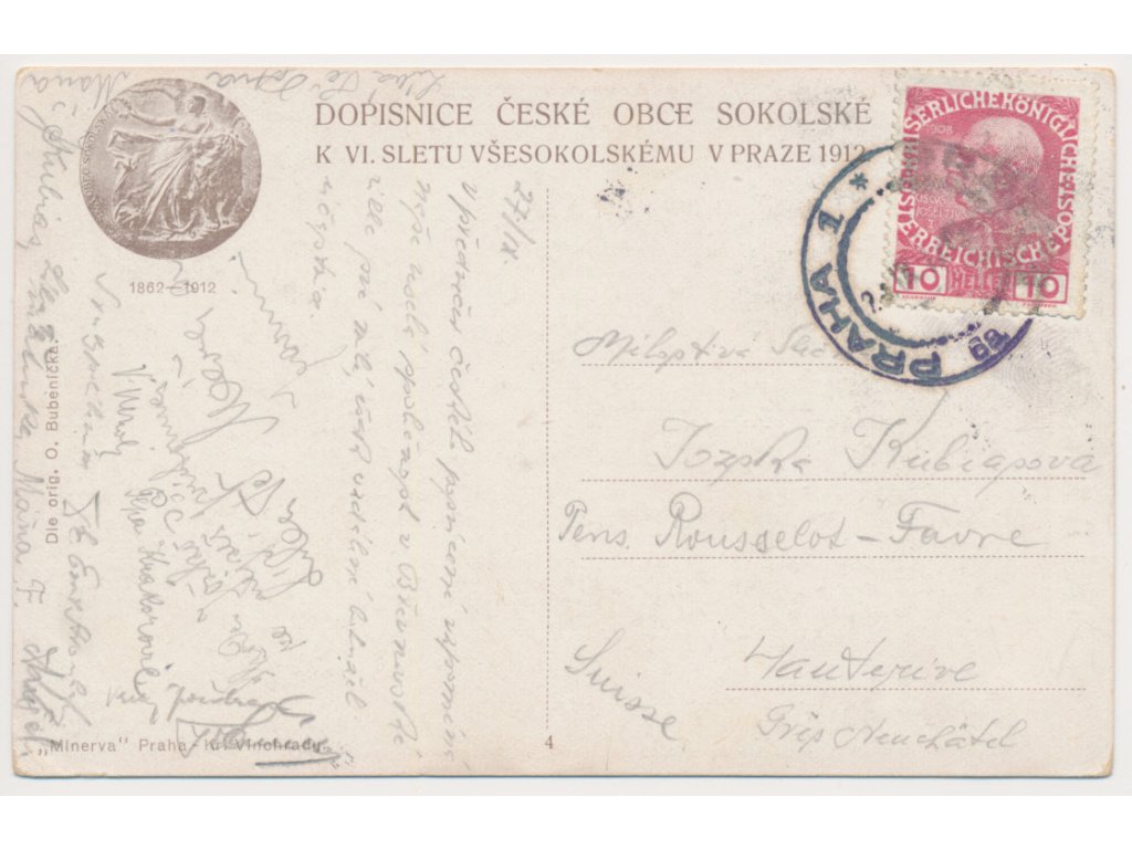 Oficiální pohlednice ČOS k VI. sletu všesokolskému v Praze, 1912