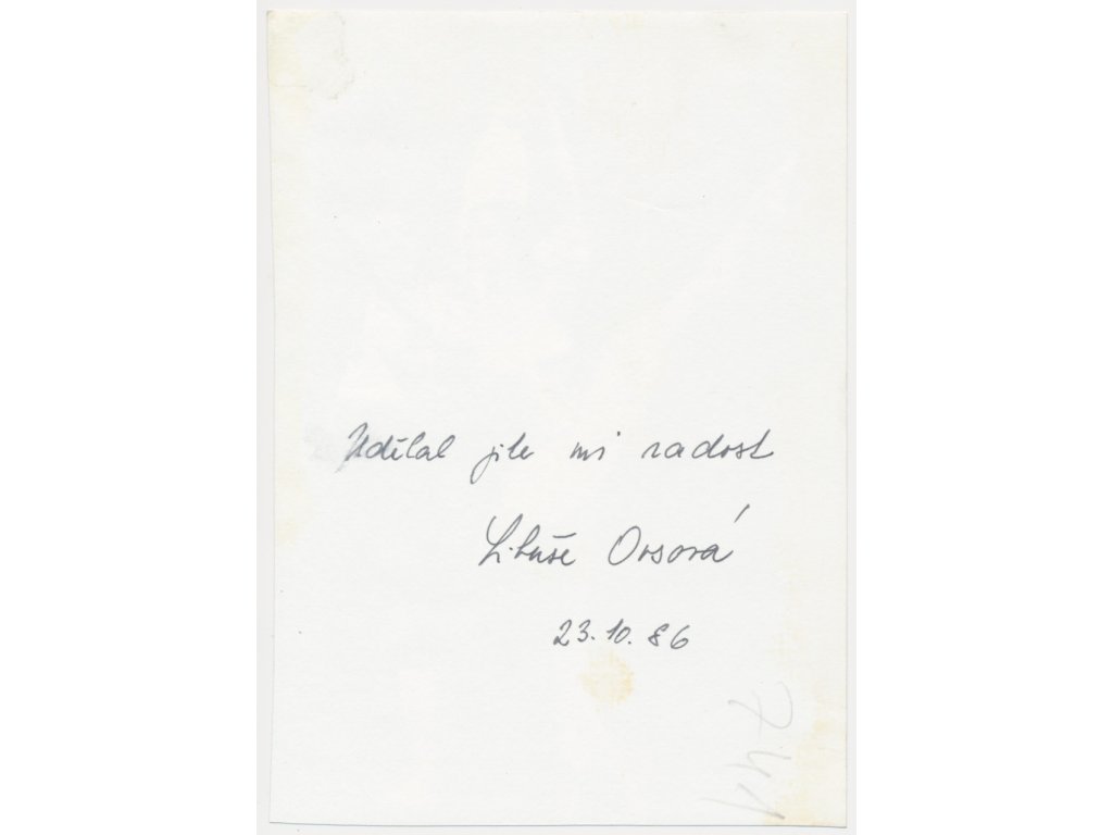 Ovsová Libuše (1963), česká baletka, tanečnice, pedagožka, sběratelský list s vl. podpisem (datováno 1986)