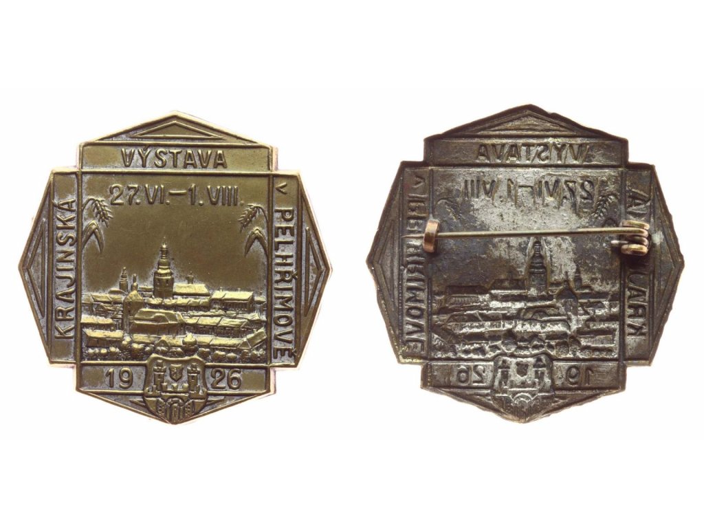 Pelhřimov, AE odznak Krajinská výstava, 1926, zavírací jehla, plech