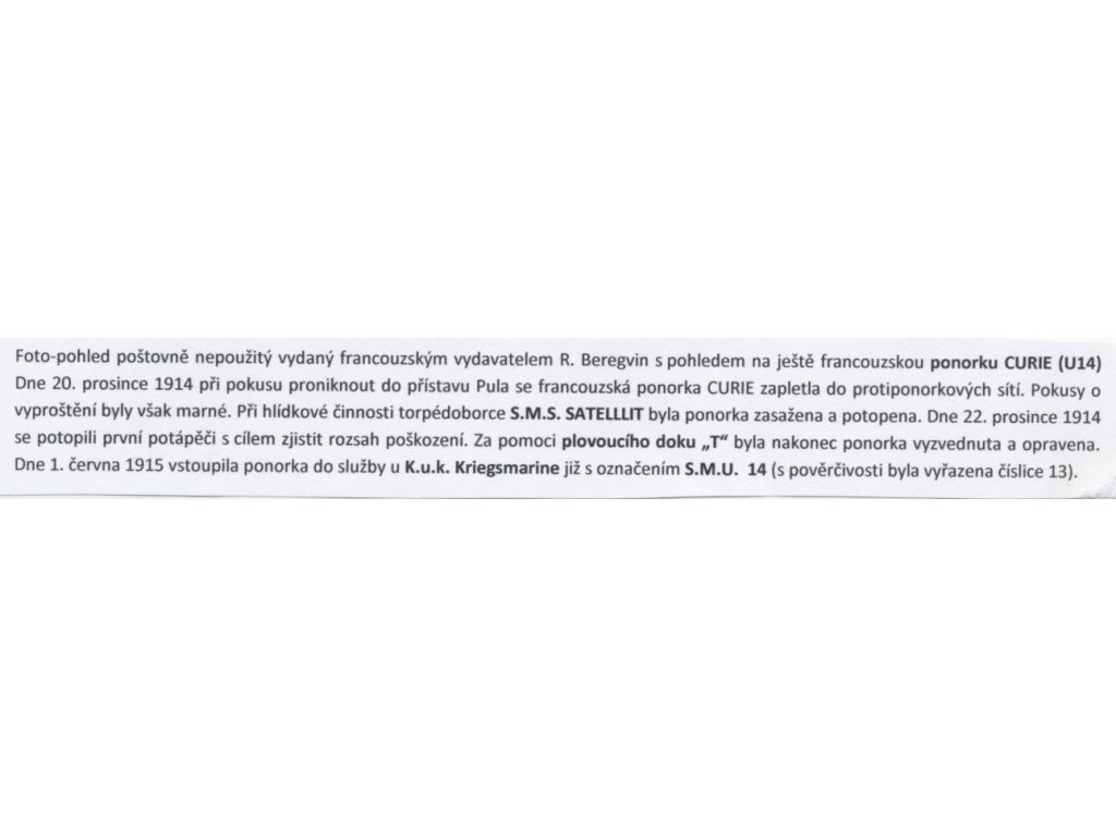 Pohled na francouzskou ponorku Curie (později S.M.U. 14), cca 1914