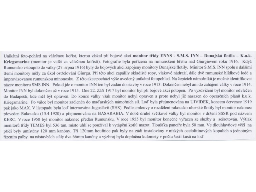 Pohled na válečnou kořist, kterou získal při bojové akci monitor třídy Enns, 1916
