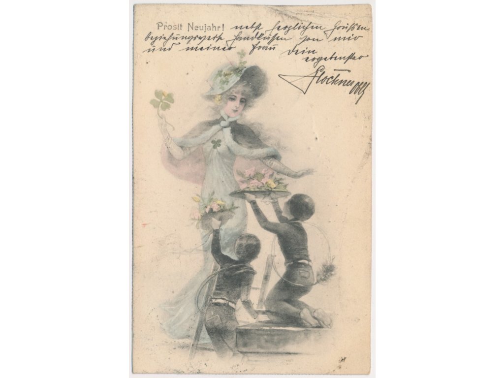 Pohlednice, Prosit Neujahr!, Šťastný Nový rok, cca 1900