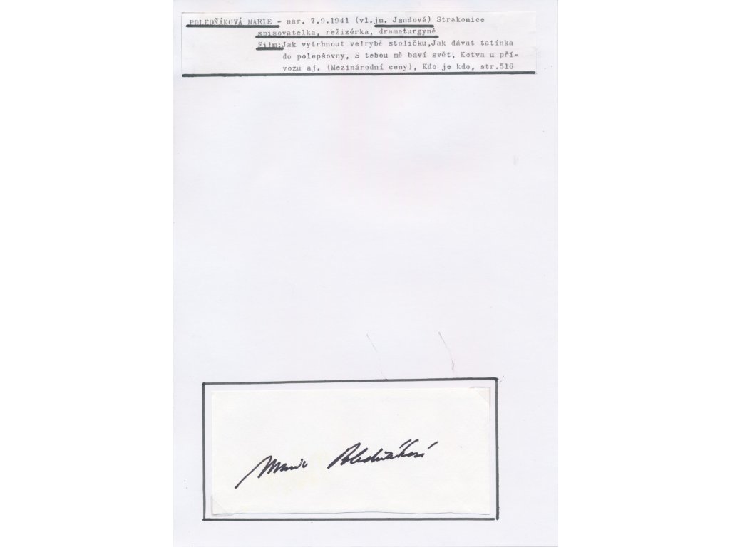 Poledňáková Marie (1941-2022), režisérka, sběratelský list o velikosti A 4 se sběratelskou kartou a vlastnoručním podpisem...viz autentické foto
