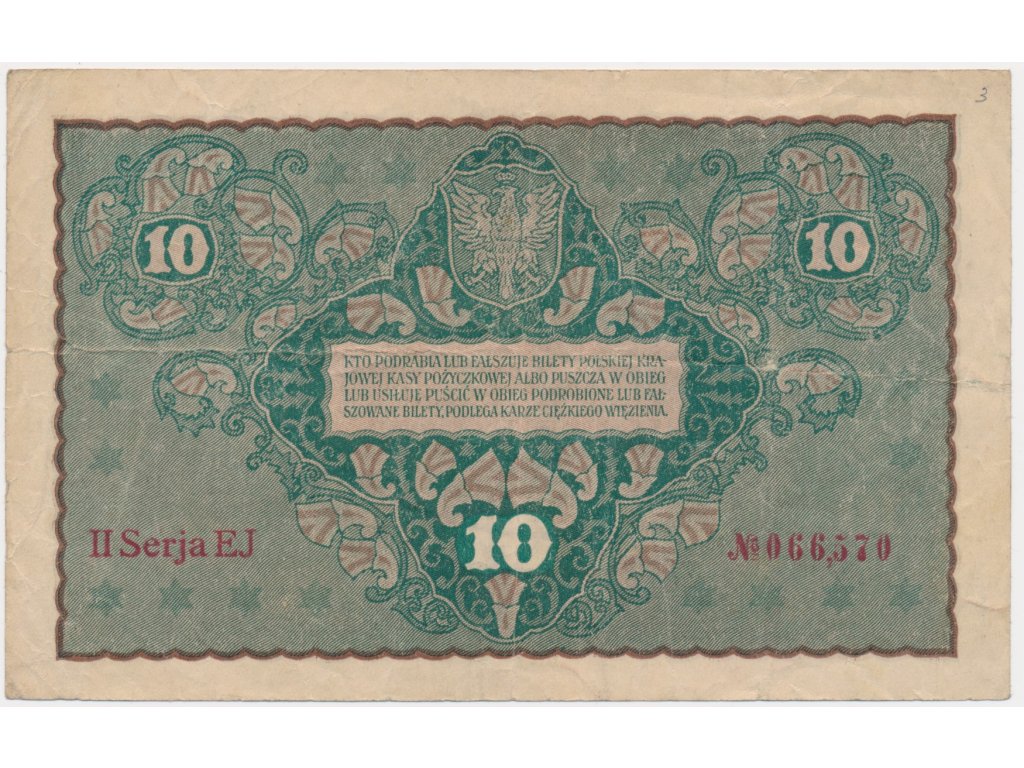 Polsko, 10 Polských Marek, 1919, oběhový stav...viz autentické foto