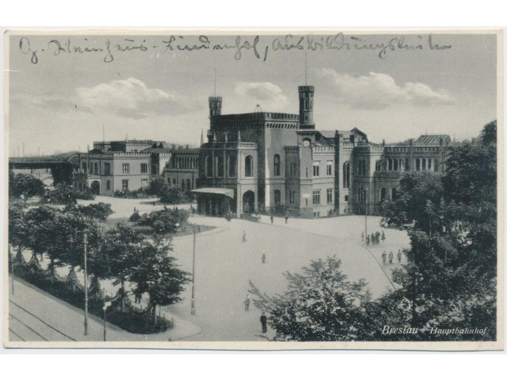 Polsko, Wrocław, oživená partie před hlavním vlakovým nádražím, 1939
