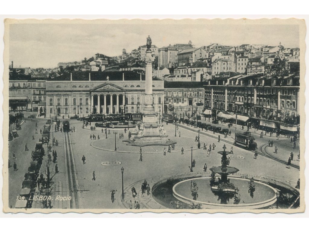 Portugalsko, Lisboa (Lisabon), Gare do Rocio, oživené náměstí, cca 1936