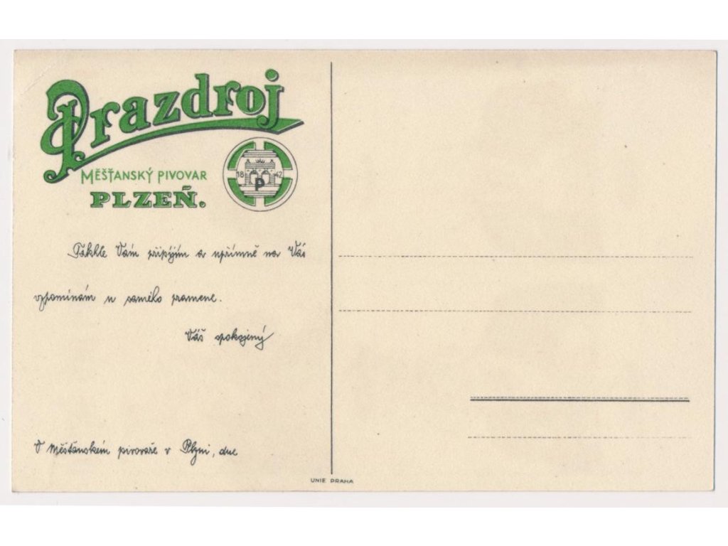 Prazdroj, reklamní pohlednice plzeňského Prazdroje, ojedinělý výskyt