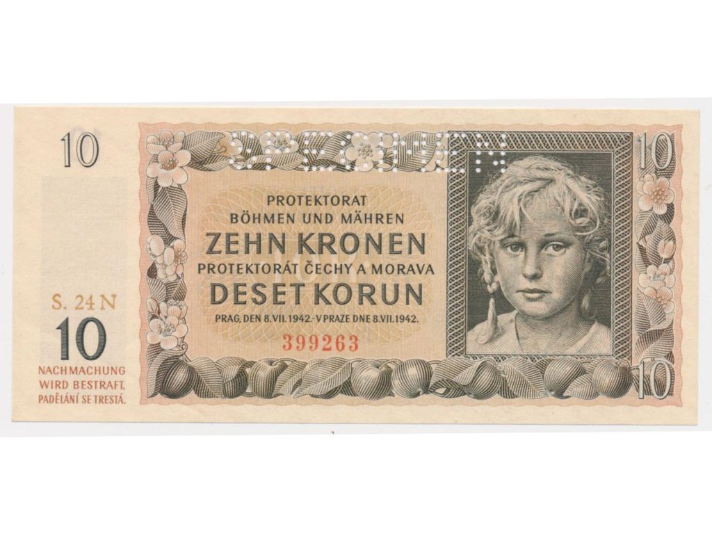 Protektorát, 10 K, 1942, série 24 N, perforovaná, krásný stav 0++