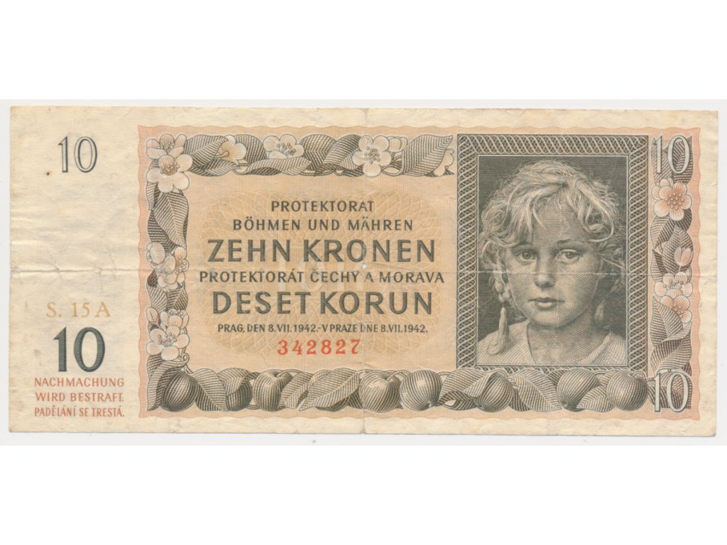 Protektorát, 10 K, 1942, série A, neperforovaná, oběhový stav