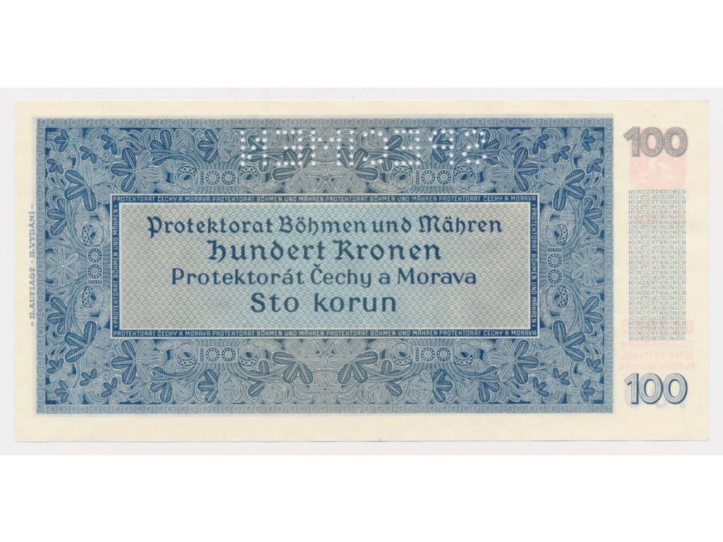 Protektorát, 100 K, 1940, série 04 A (I.vydání), perforovaná, luxusní sběratelská jakost UNC