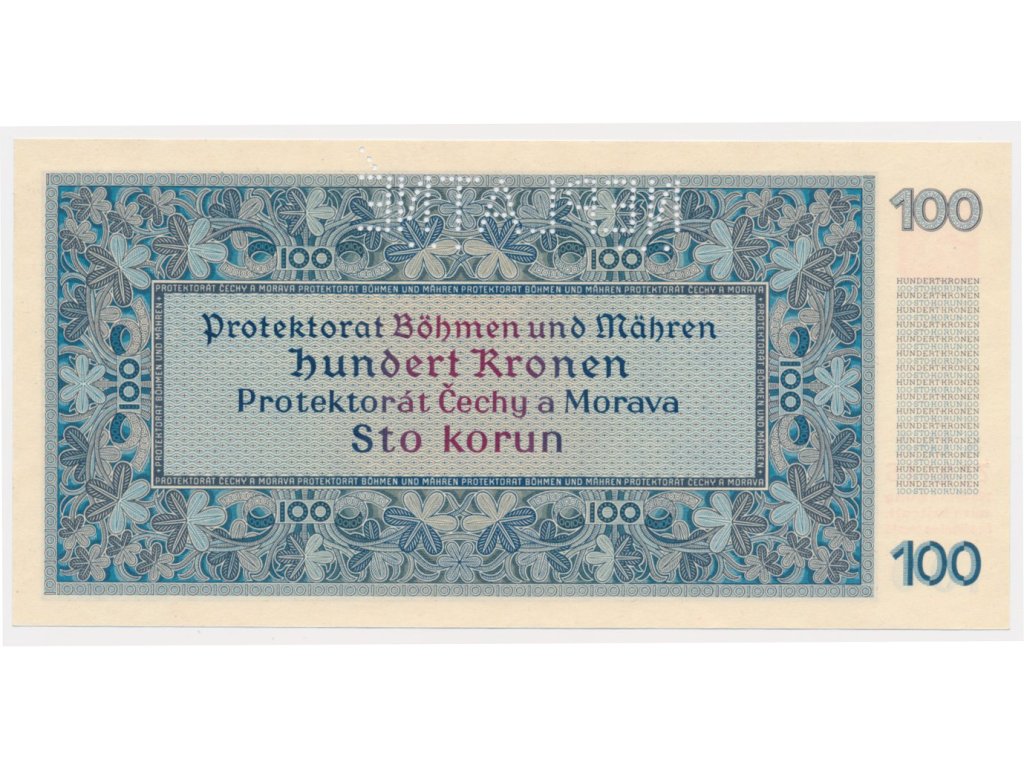 Protektorát, 100 K, 1940, série 18 A, perforovaná NEPLATNÉ (!!), luxusní sběratelská jakost UNC