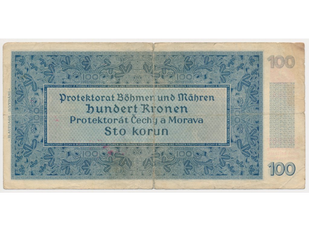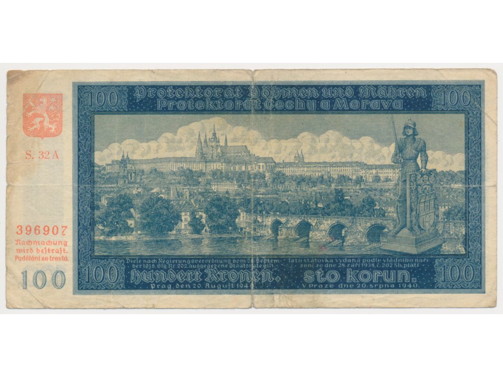 Protektorát, 100 K, 1940, série A, neperforovaná, oběhový stav