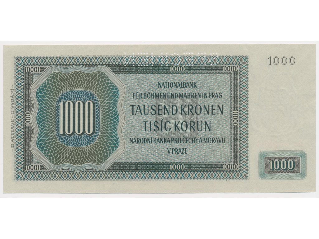 Protektorát, 1000 K, 1942, série Ac, perforovaná, luxusní sběratelská jakost UNC