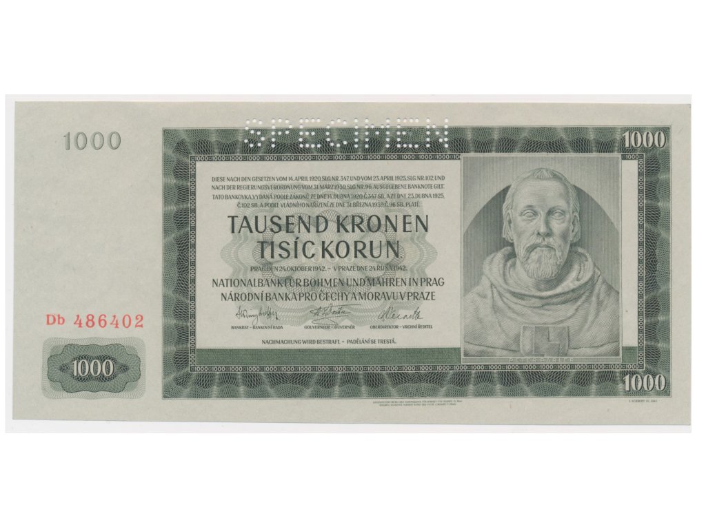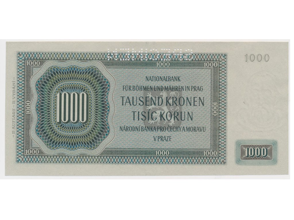 Protektorát, 1000 K, 1942, série Db, perforovaná, luxusní sběratelská jakost UNC