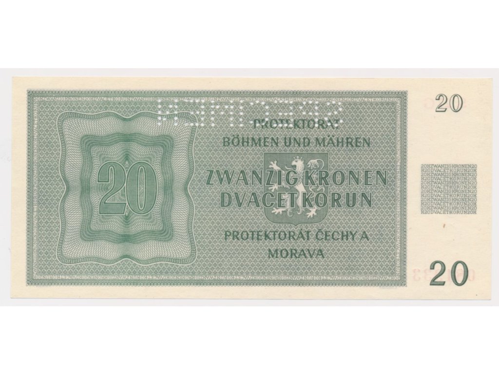 Protektorát, 20 K, 1944, série 27 G, perforovaná, luxusní sběratelská jakost UNC