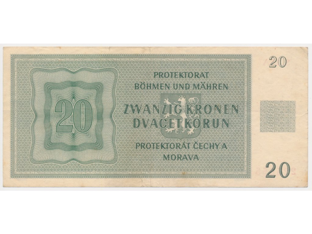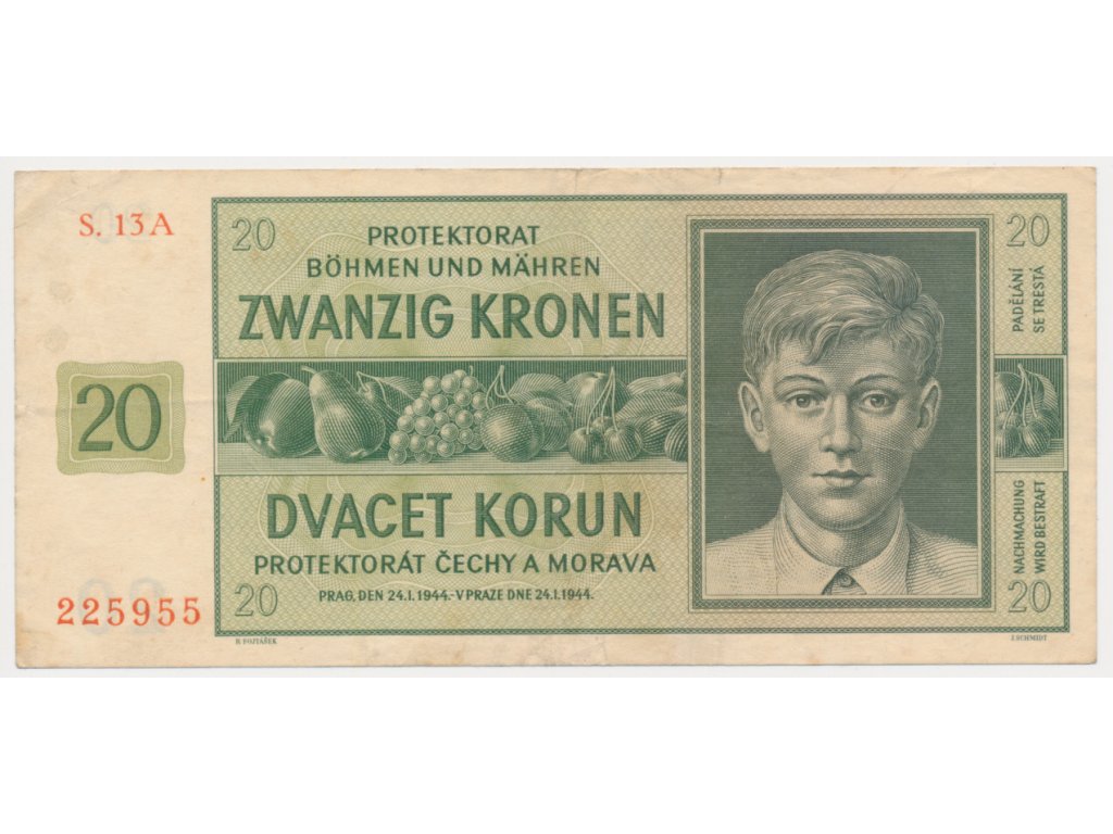 Protektorát, 20 K, 1944, série A, neperforovaná, pěkný oběhový stav