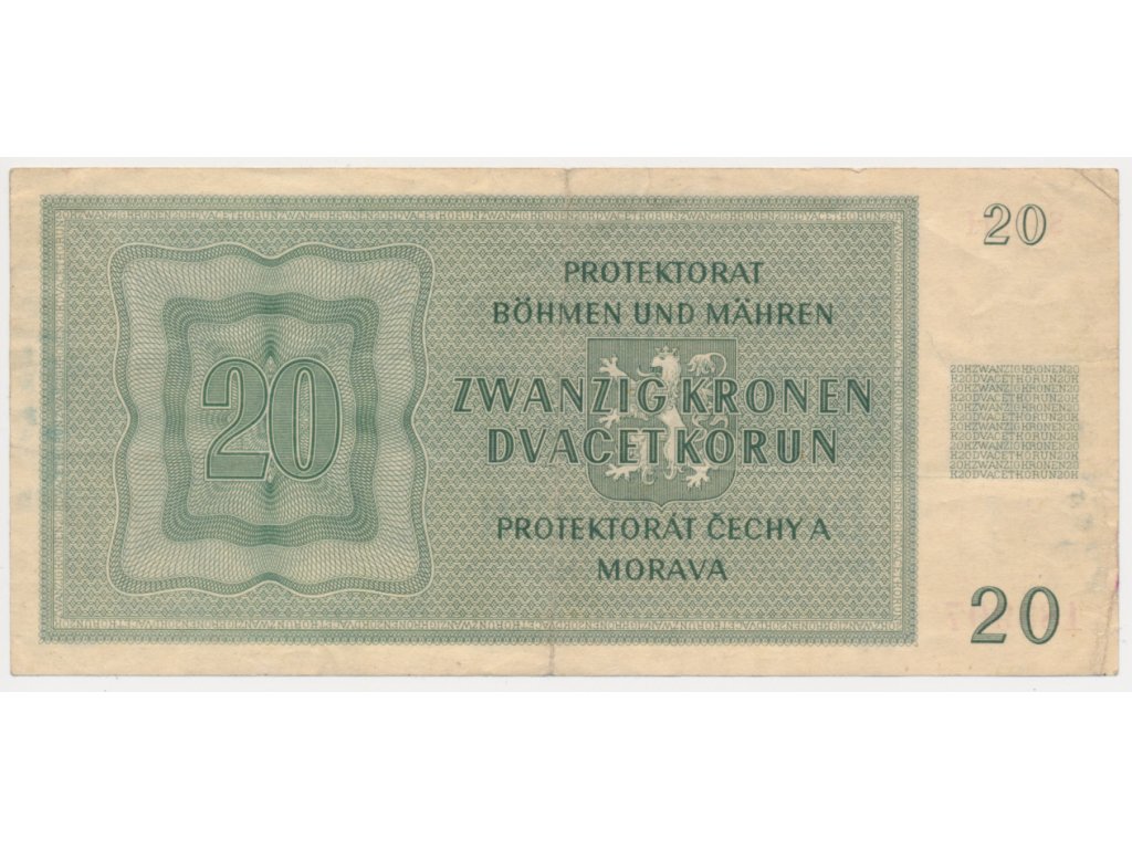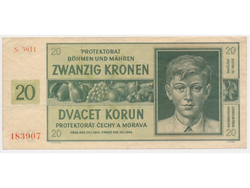 Protektorát, 20 K, 1944, série H, neperforovaná, pěkný oběhový stav