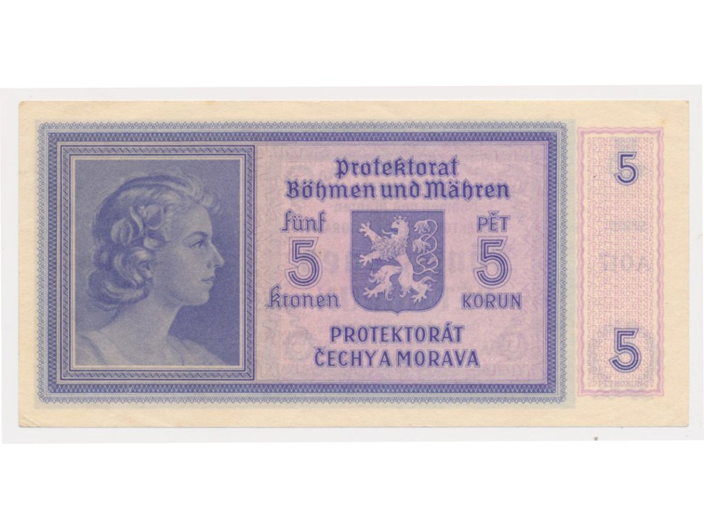 Protektorát, 5 K, bez data (1940), série A 017, neperforovaná, krásný stav 0+