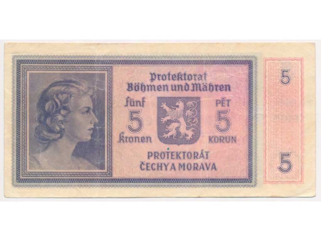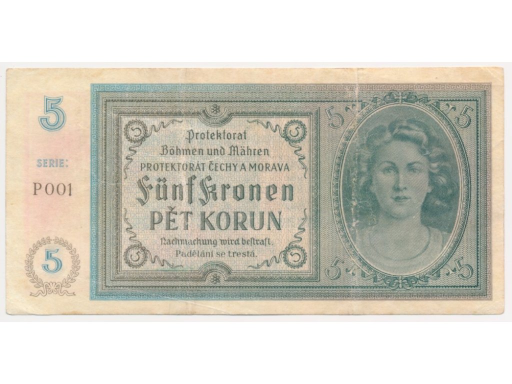 Protektorát, 5 K, bez data (1940), série P, neperforovaná, oběhový stav