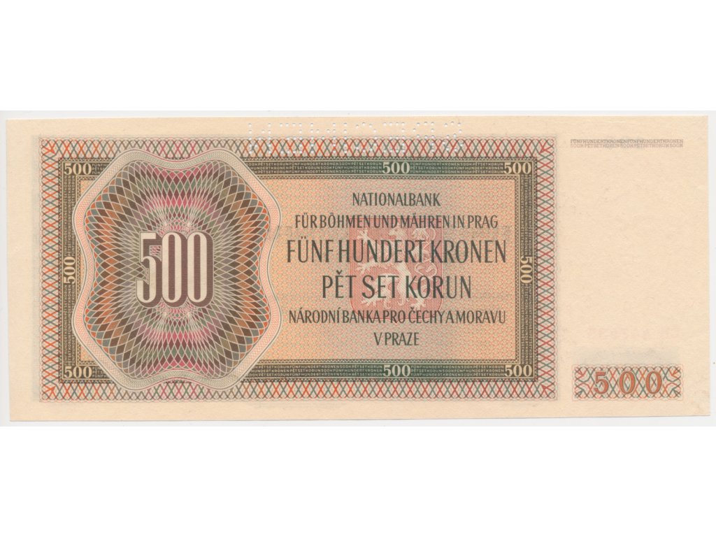 Protektorát, 500 K, 1942, série CH, perforace SPECIMEN, stav UNC...viz autentické foto