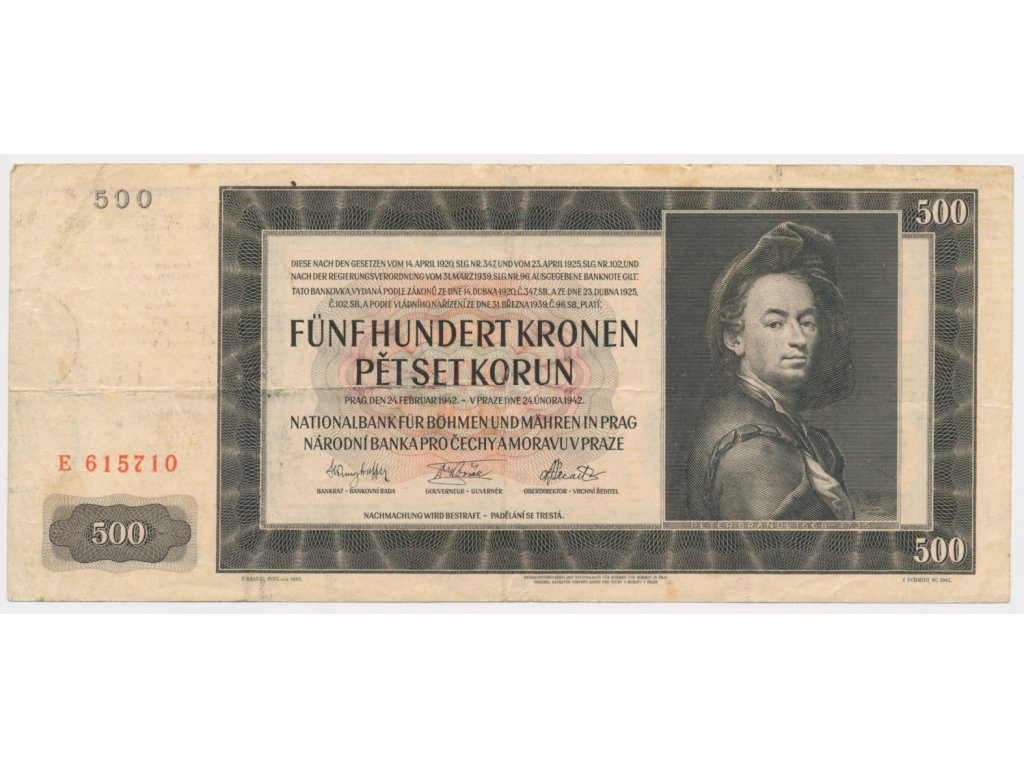 Protektorát, 500 K, 1942, série E, neperforovaná (!!)