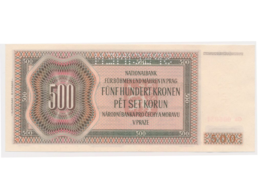 Protektorát, 500 K, 1942, série Ga, perforovaná, luxusní sběratelská jakost UNC...viz autentické foto