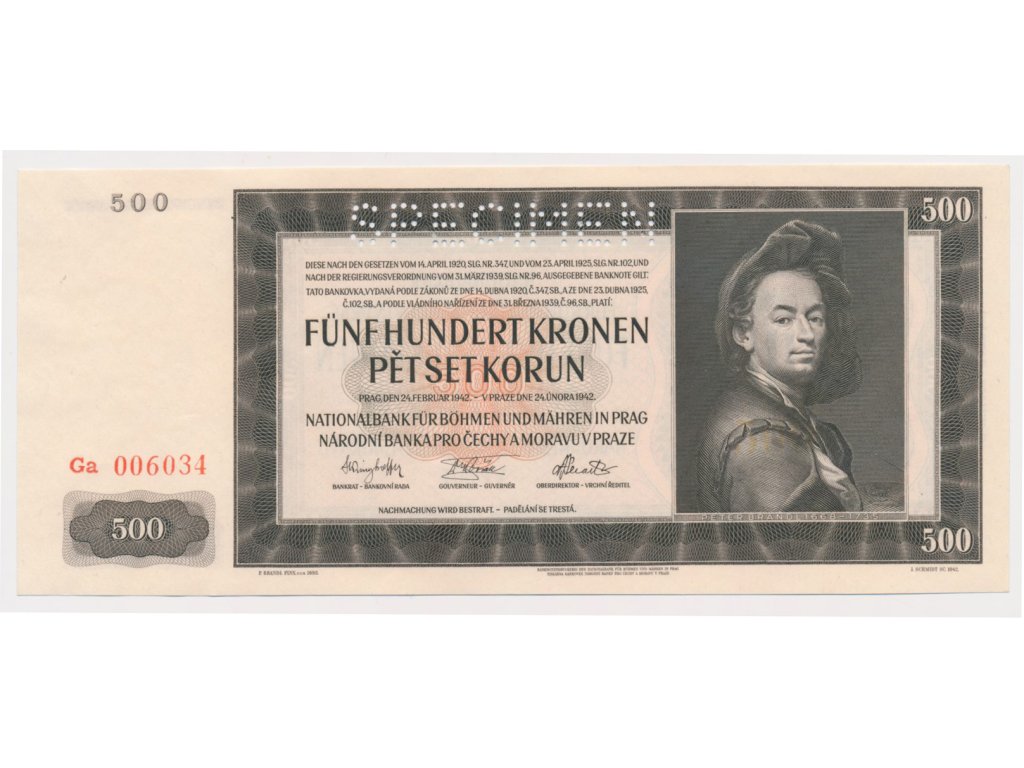 Protektorát, 500 K, 1942, série Ga, perforovaná, luxusní sběratelská jakost UNC