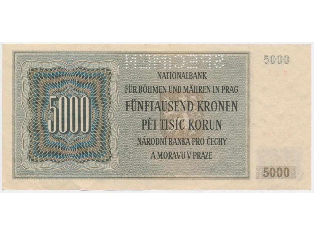 Protektorát 1939 - 1945, 5000 K , 1944, série A, perforovaná, stav 0 -...viz autentické foto