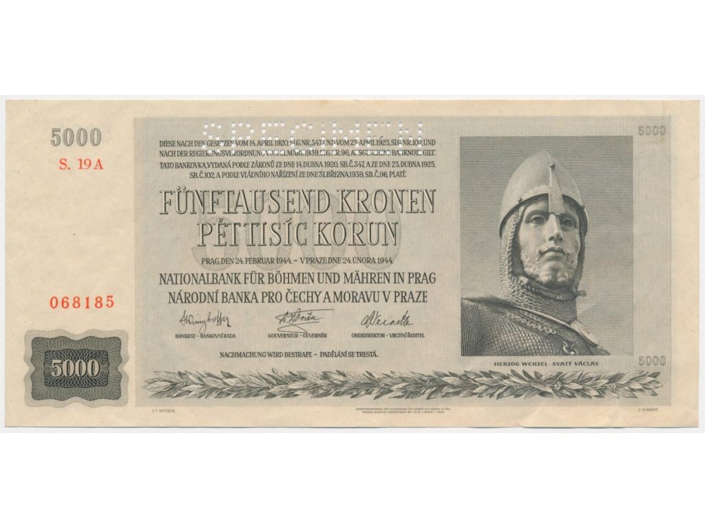 Protektorát 1939 - 1945, 5000 K, 1944, série A, perforovaná, stav 0 -