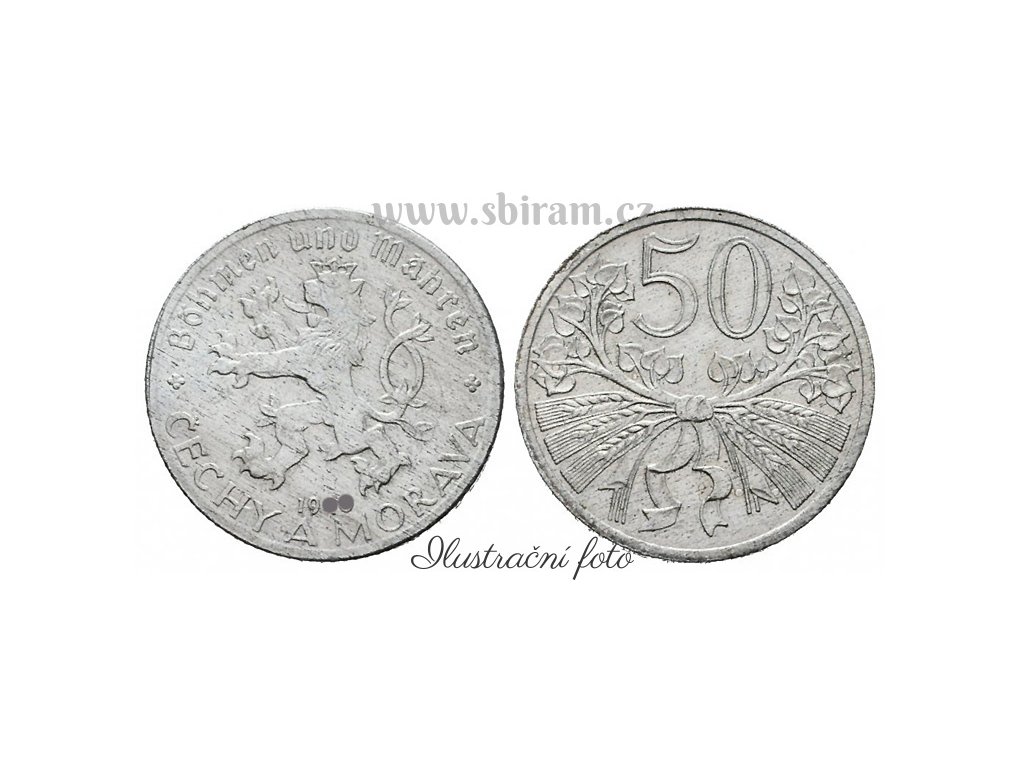 Protektorát Čechy a Morava, mince 50 Haléř, 1942, stav 1/1...viz ilustrační foto