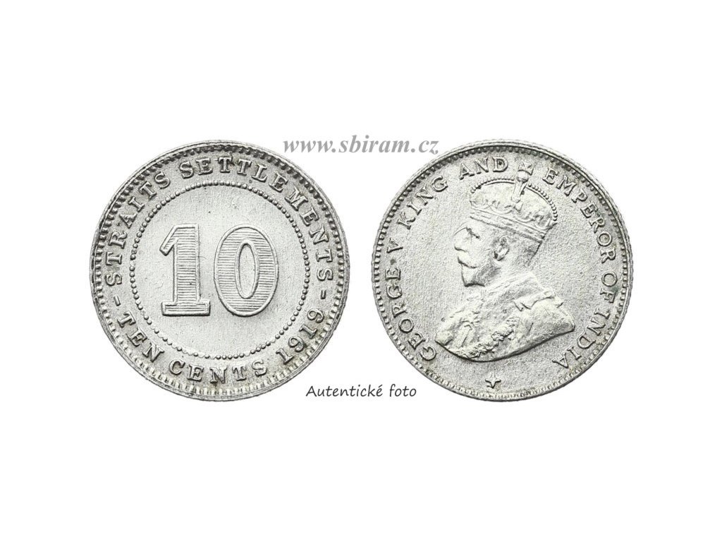 Průlivové osady, Ag (stříbrná) mince 10 Cents, 1919...viz autentické foto
