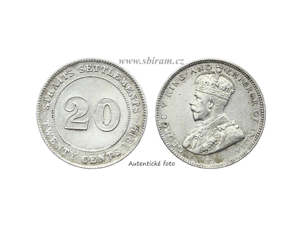 Průlivové osady, Ag (stříbrná) mince 20 Cents, 1919...viz autentické foto