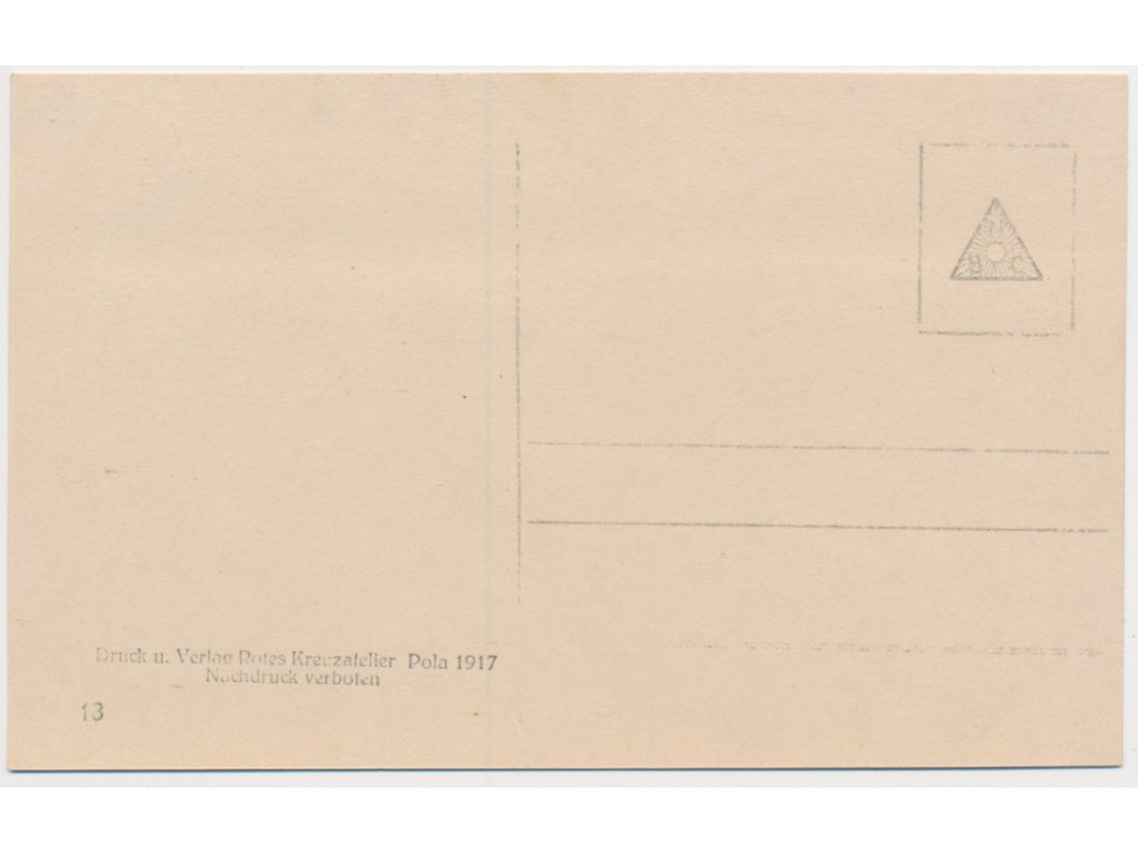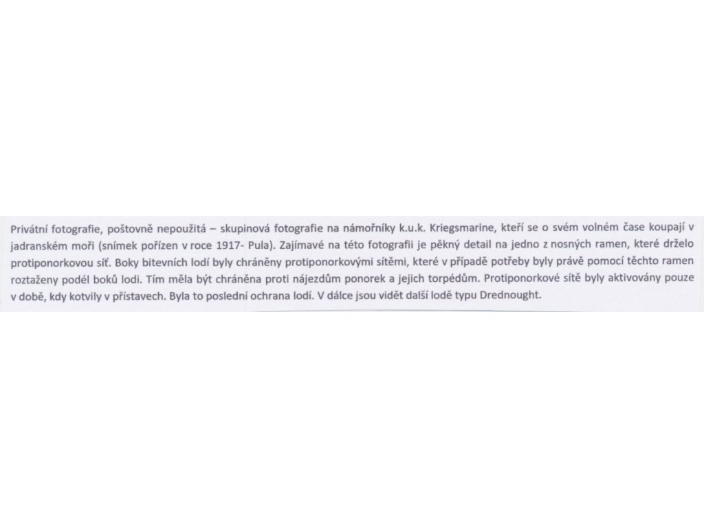 Pula, pohled na námořníky K. U. K. Kriegsmarine při koupání, cca 1917, přiložen štítek s podrobným sběratelským popisem, pohlednice neprošlá poštou, stav odpovídá použití, uložení a stáří...viz autentické foto