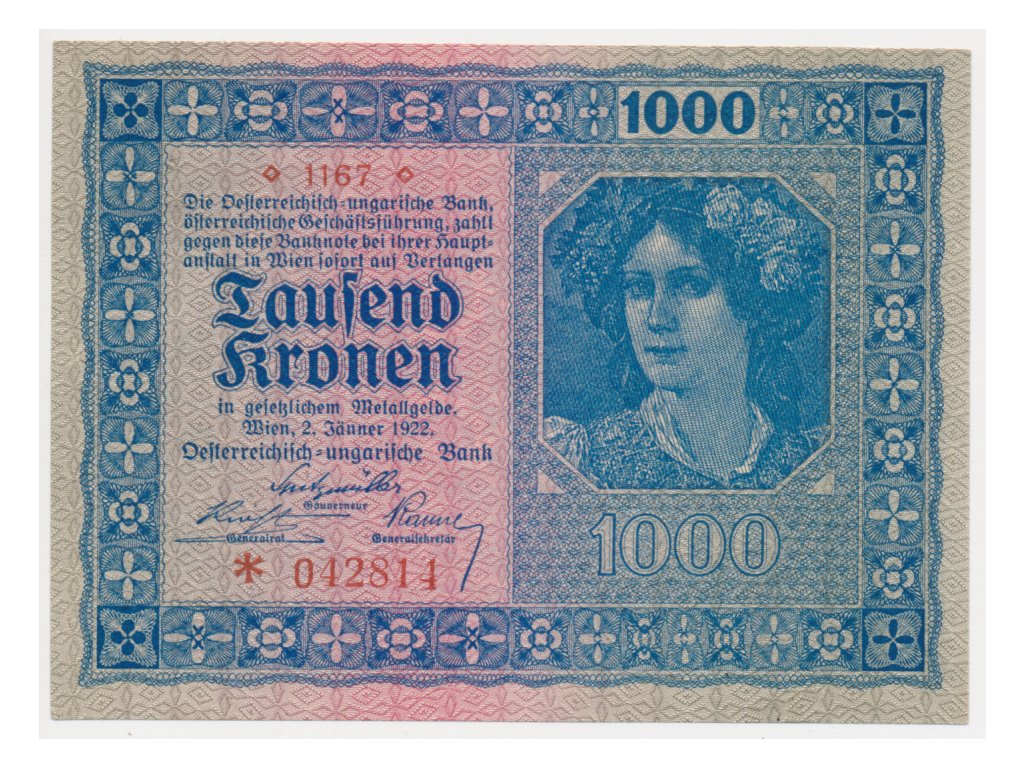 Rakousko, 1000 Kronen, 1922, série 1167, stav 0