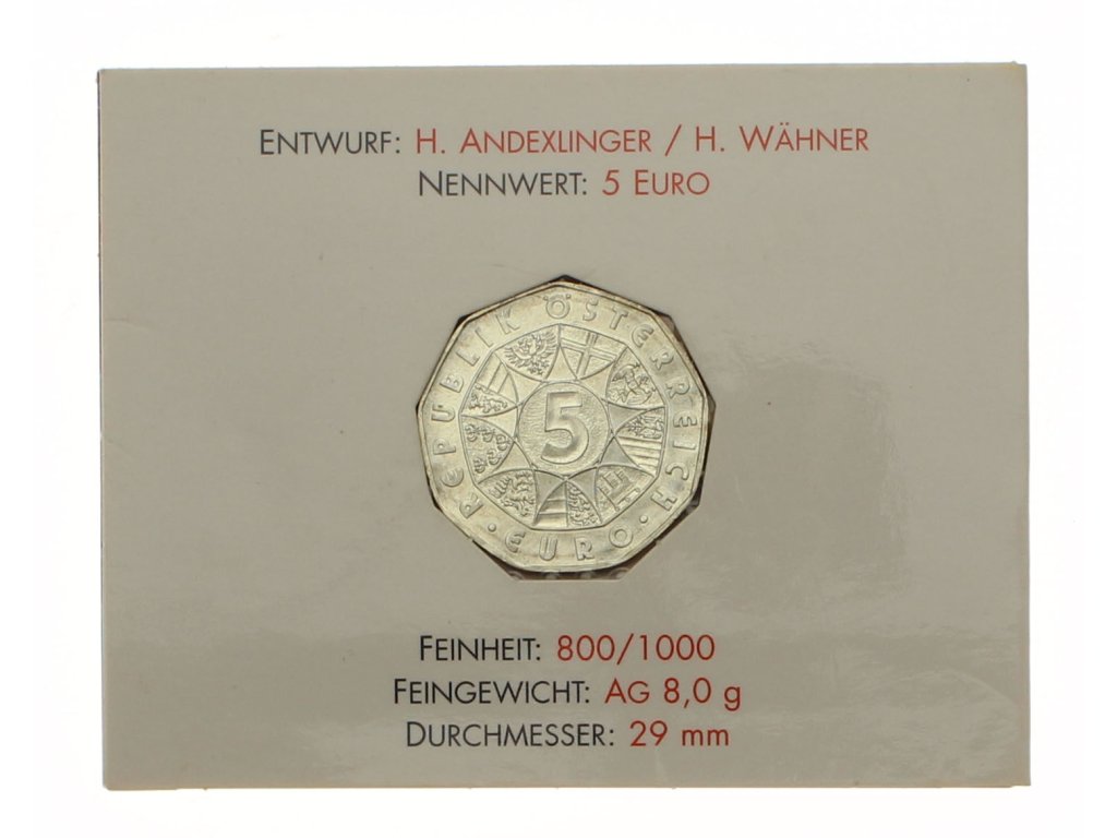 Rakousko, Ag (stříbrná) mince 5 Eur v dárkovém balení, ZOO, Ag 0,800, váha 8 g, stav 0/0...viz autentické foto
