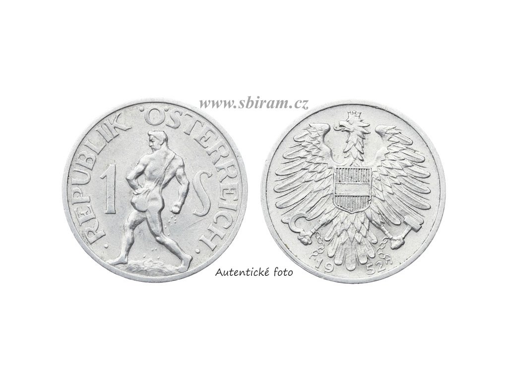 Rakousko, mince 1 Schilling, 1952...viz autentické foto