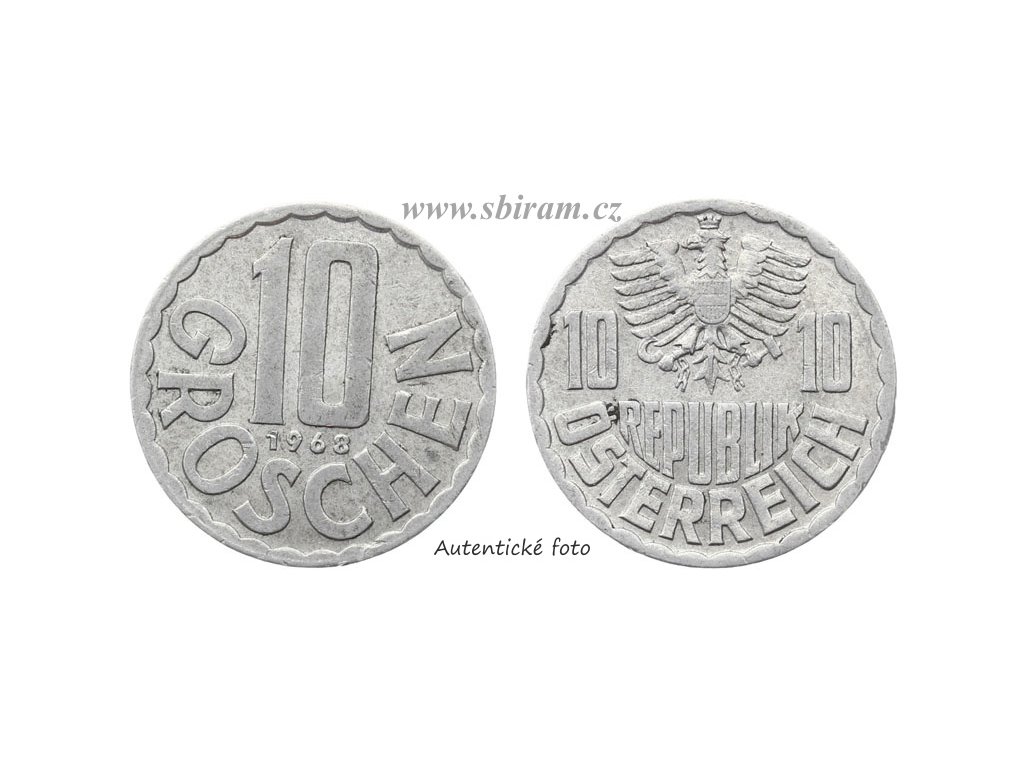 Rakousko, mince 10 Groschen, 1968...viz autentické foto