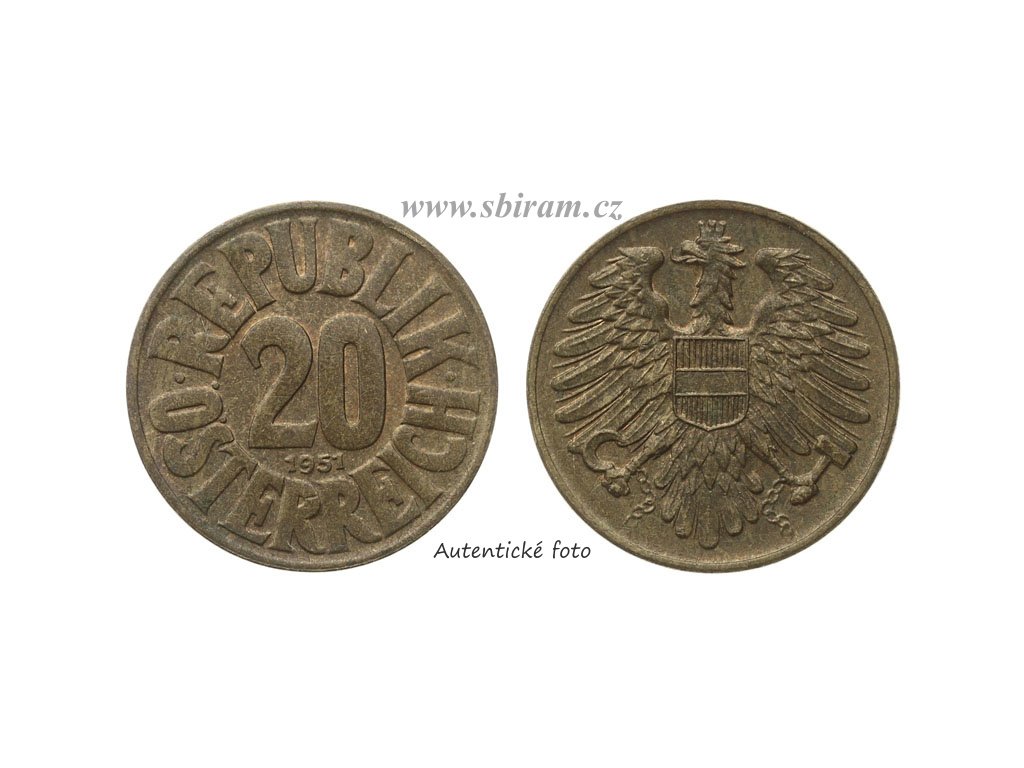 Rakousko, mince 20 Groschen, 1951...viz autentické foto