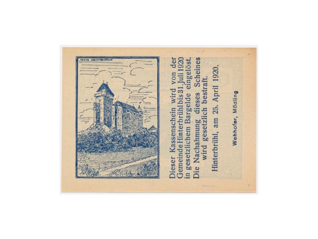 Rakousko, nouzová bankovka, 10 h, Hinterbrühl, 25.4.1920, luxusní stav UNC