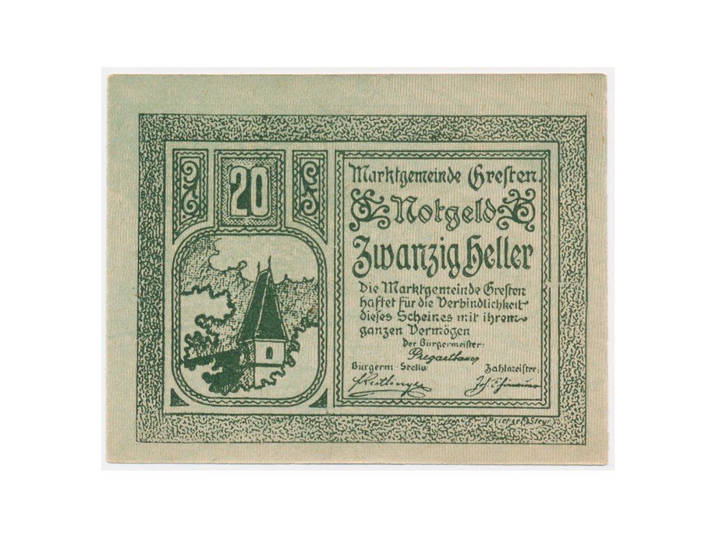 Rakousko, nouzová bankovka, 20 h, Gresten, 1920, luxusní stav UNC