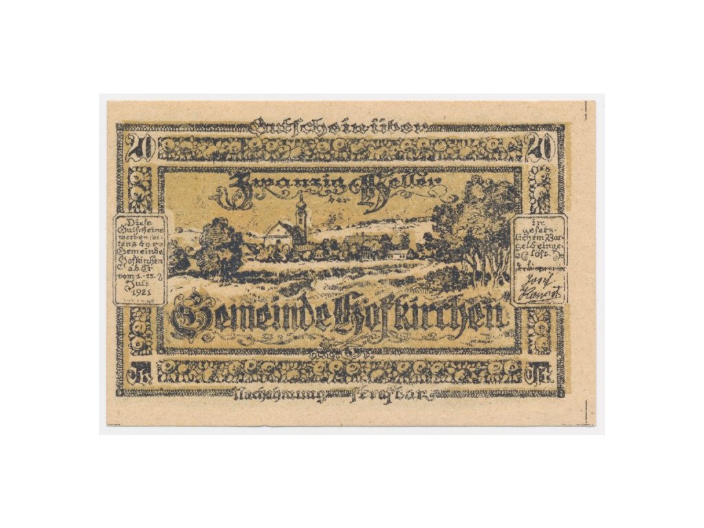 Rakousko, nouzová bankovka, 20 h, Hofkirchen, 1921, krásný stav UNC