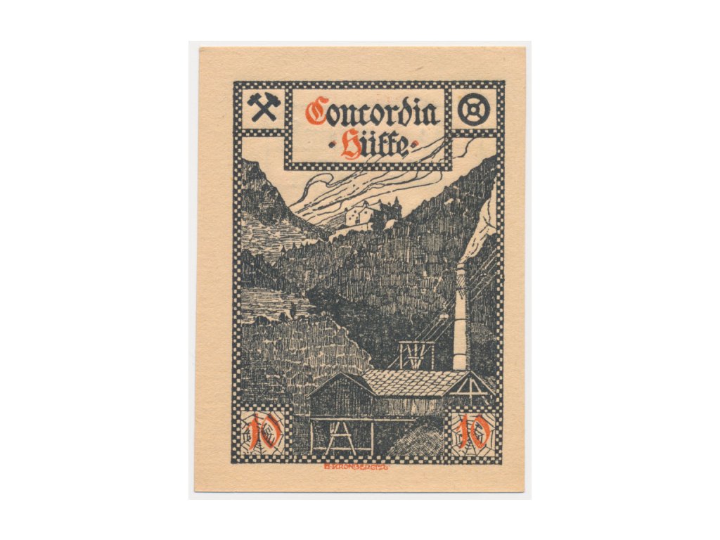Rakousko, nouzová bankovka 10 h, ConkordiaHütte, 1920, krásný stav UNC