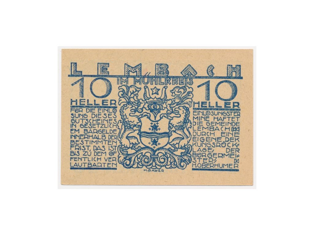 Rakousko, nouzová bankovka 10 h, Lembach, 1920, krásný stav UNC...viz autentické foto