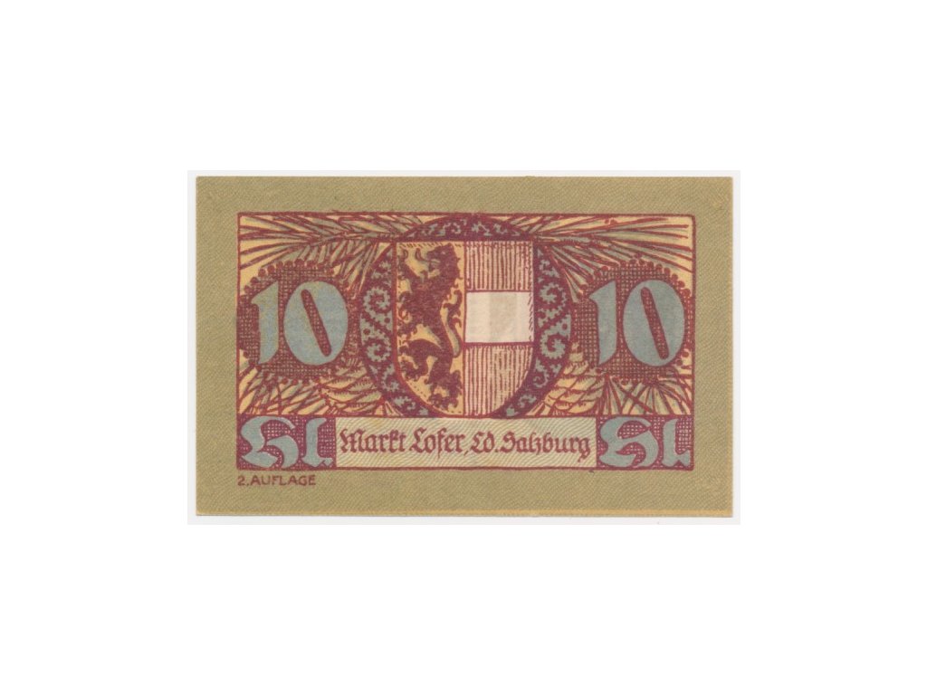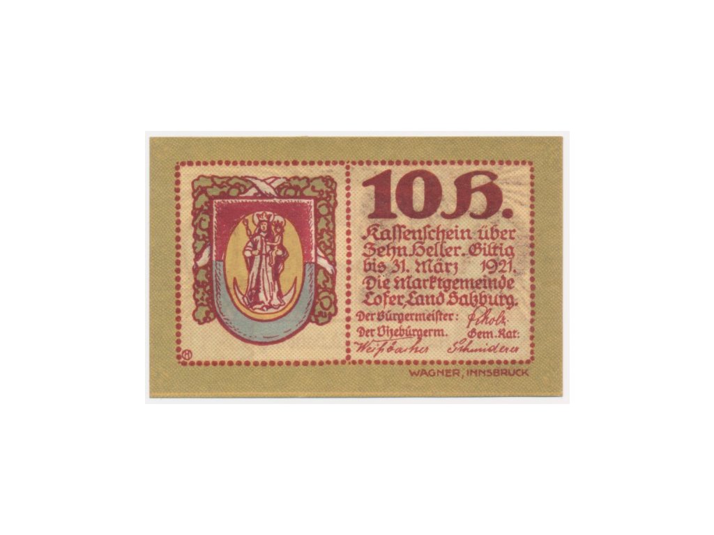 Rakousko, nouzová bankovka 10 h, Lofer, 1921, krásný stav UNC