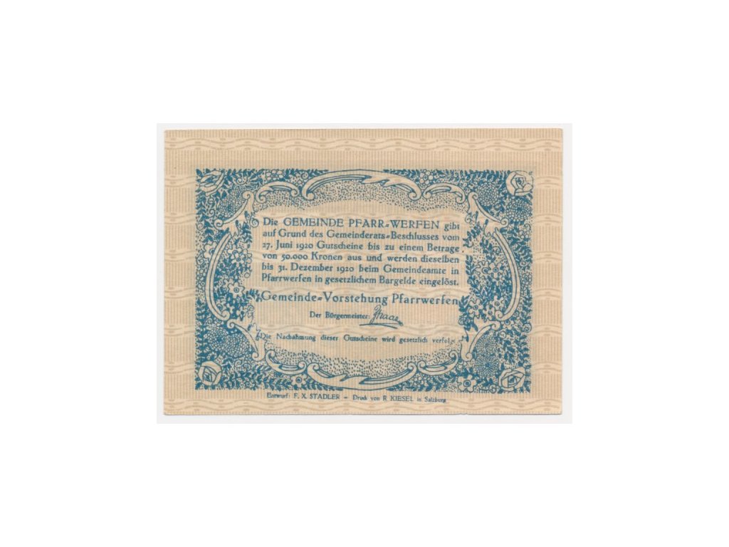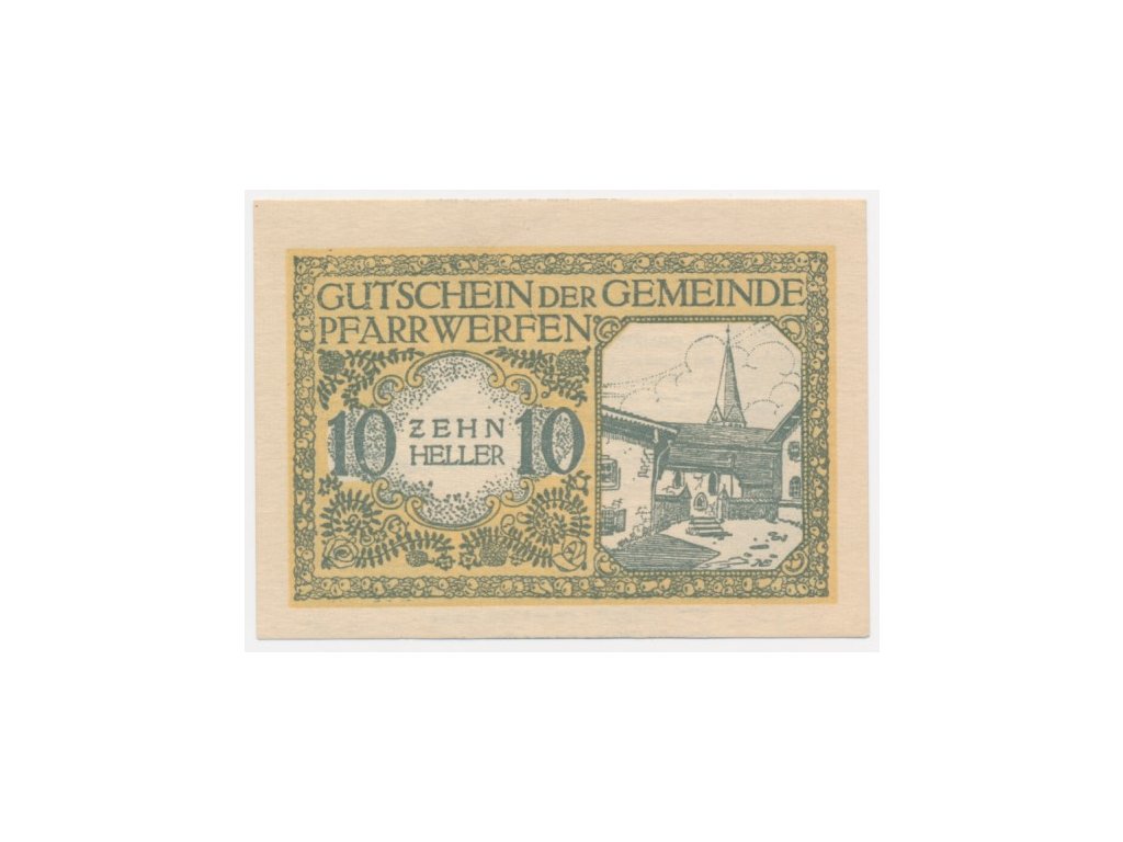 Rakousko, nouzová bankovka 10 h, Pffarrwerfen, krásný stav UNC